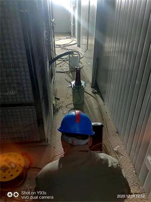 2020.12.11号前往武船集团进行10Kv变压器和10Kv电缆耐压试验。十点多钟我和技术尹工到达武船集团,经过保安检查后,到达试验现场。到现场后,看见电力施工人也都忙着安装电力设备,现场看了一遍安全环境后,就开始将设备卸车,搬往变压器室。设备搬到现场后,开始现场试验前的准备工作,摆好隔离栏,放好试验工具。做好这些准备工作,开始用kD305高压绝缘测试仪,开始测低压侧绝缘,测出ABc,三相对地绝缘阻织为48.8MΩ,45.6MΩ,47.2MΩ,现场记录并保存,做完相与相绝缘后,开始做高压侧绝缘,测出ABC三相阻织分别为87KΩ,90KΩ,88KΩ.