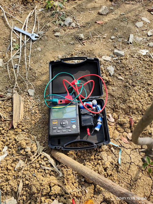 现场负责人齐经理把现场情况简单介绍了以后,我就开始前往。2个小时的车程到达后,与现场技术王工见面后,他讲解了现场情况,这是一条低压380V电缆,长度400米,三相五线带凯装电缆,一条新埔设电缆,就是C相绝缘阻值比较低,不敢安装运行,让我帮检查一下。首先用KD305绝缘电阻测试仪用500Ⅴ电压等级测量,其它几相绝缘阻值都在100多兆欧以上,只有C相对地阻值为4.5兆欧。得出这结果后,也不能说明电缆有问题。