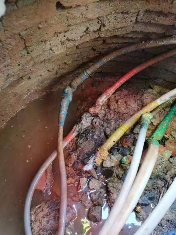 了解了现场以后,开始对电缆进行检测。将两端电缆解开后,首先摇绝缘。用KD305检测相间对地阻值都为零,相间阻值都不高。再用KD一212草莓短视频下载测试仪测出故障距离168米。知道故障距离后,然后用KD一214电缆管线综合测试仪,查找电缆走向,顺着信号找出电缆路径后。原来前面一部分在围墙外面,后面一部分在围墙里面。再用KD一210高压发生一体源装置进行故障相升压。当设备发出放电信号正常后,用声磁同步定点仪进行精确定点。在160米左右捕捉到放电信号后,最后在165米范围精确定点。当挖开后,原来下面有个电缆井,被施工方埋在里面了,草莓短视频下载现象很明显,也很直观。