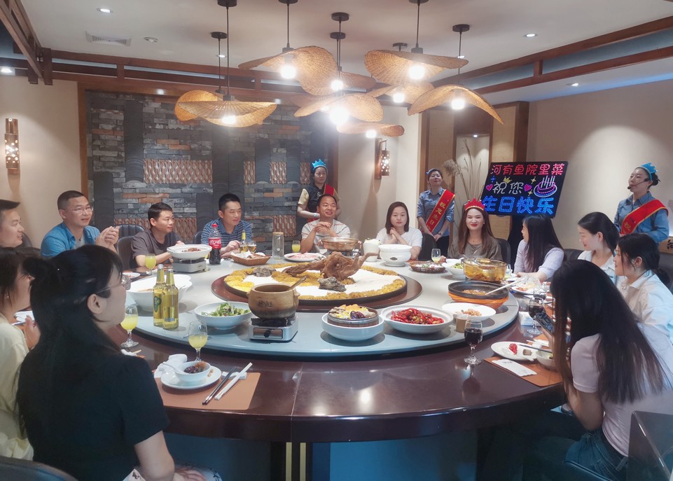 聚餐于近日在公司附近的河有鱼·院里菜饭店(径河店)隆重举行,员工欢聚一堂,共同为这个月过生日的寿星庆祝生日。选择这一家很有特色的餐厅,据说是网红打卡圣地,被她们家的环境吸引而来,装修风格属于田园式餐厅,十分温馨。