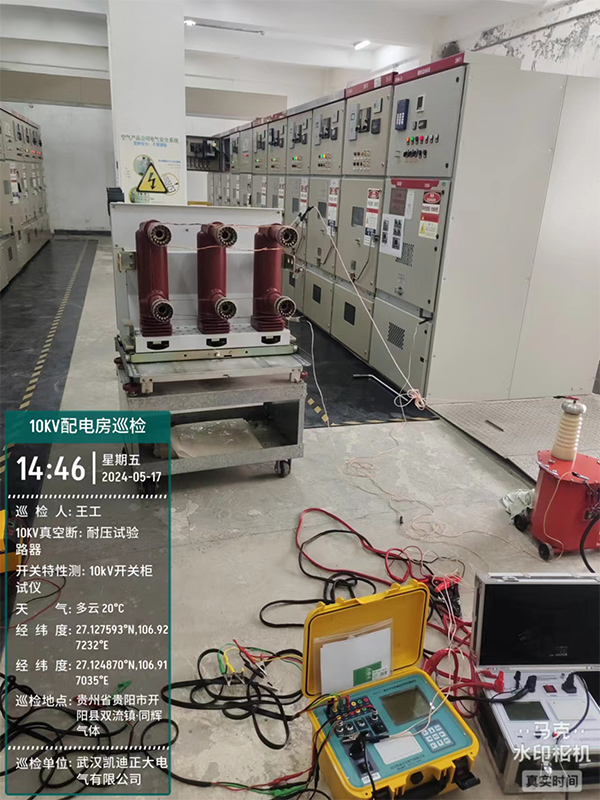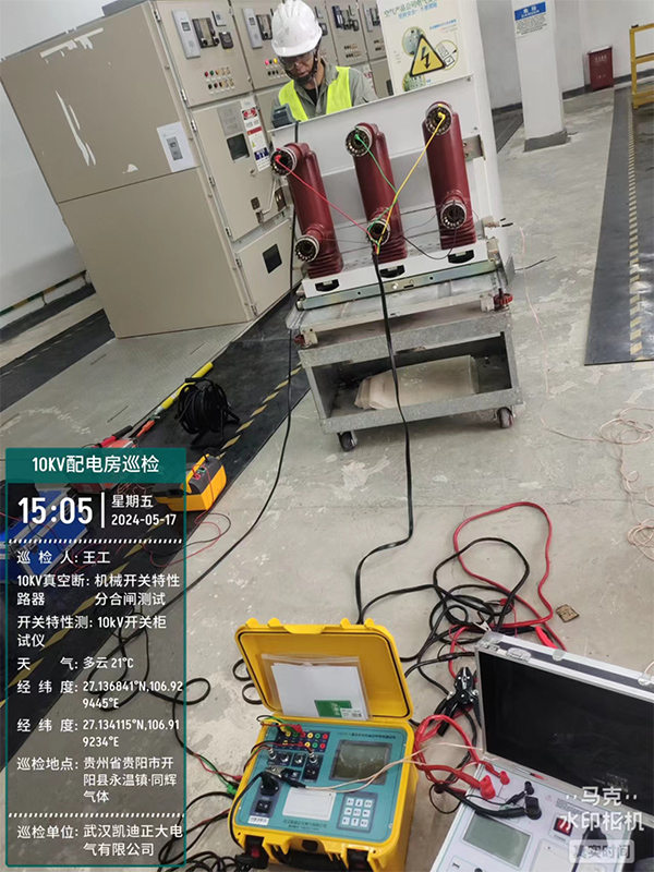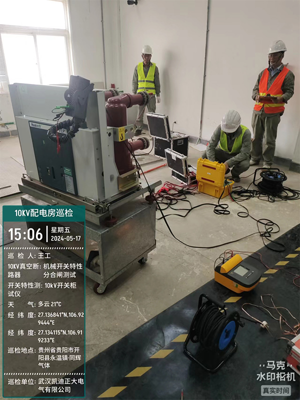 此次巡检工作的重点是对10KV开关柜中的10KV真空断路器进行机械开关特性分合闸测试和耐压试验,为了确保测试的准确性和可靠性工程师们携带了专业的设备开关特性测试仪、回路电阻测试仪,电容电感测试仪等仪器。到达巡检地点后,他们迅速投入工作,对断路器进行了全面的检测。