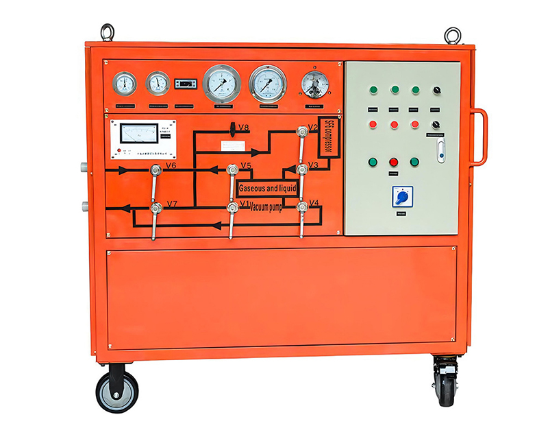 KDQH-33气体回收充气装置,SF6气体作为一种绝缘气体,具有无毒、不可燃,以及良好的绝缘特性,其绝缘强度大大高于传统的绝缘气体,并具有良好的灭弧性,因此广泛应用于SF6电器。由于SF6气体价格昂贵,且在电弧、电火花和电晕放电的作用下,会分解产生有毒成份。因此SF6电器设备应用时需要将SF6气体回收。本装置就是为了制造和维修SF6电器设备时,回收和充加SF6气体的一种专用设备。