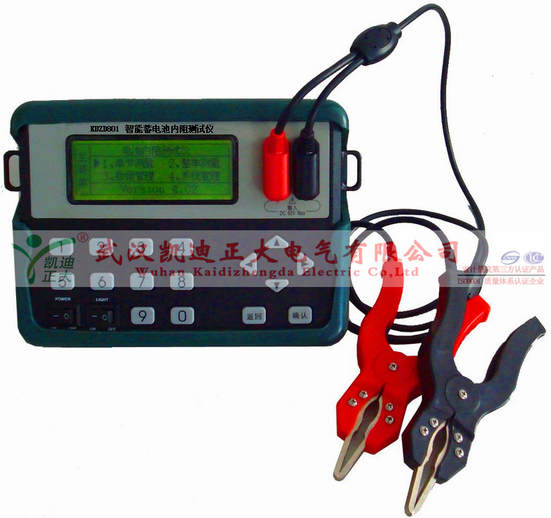 国际上,内阻的测试已被应用于电池的日常维护而取代过去的电压检查法。因为内阻是反映电池内部的参数, 电池的内阻是准确而快速的判断电池健康状况的重要参数。 (参阅IEEE std 1188—1996)。 关于内阻与容量的结论是:当电池的内阻大于初始值(基值) 的25%时,电池将无法通过容量的测试。当电池的内阻大于初始值 (基值) 的2倍时,电池的容量将在其额定容量的80%以下。 KDZD801蓄电池内阻测试仪是快速准确测量电池运行状态参数的数字存储式多功能便携式测试仪器。该仪表通过在线测试,能显示并记录一节或多组电池电压、内阻、阻抗等电池重要参数,有效地判别电池优良状况,并可与计算机及专用电池数据分析软件一起构成智能测试设备,进一步跟踪电池的衰变趋势,并提前报警,以利于工程技术及管理人员酌情处理。