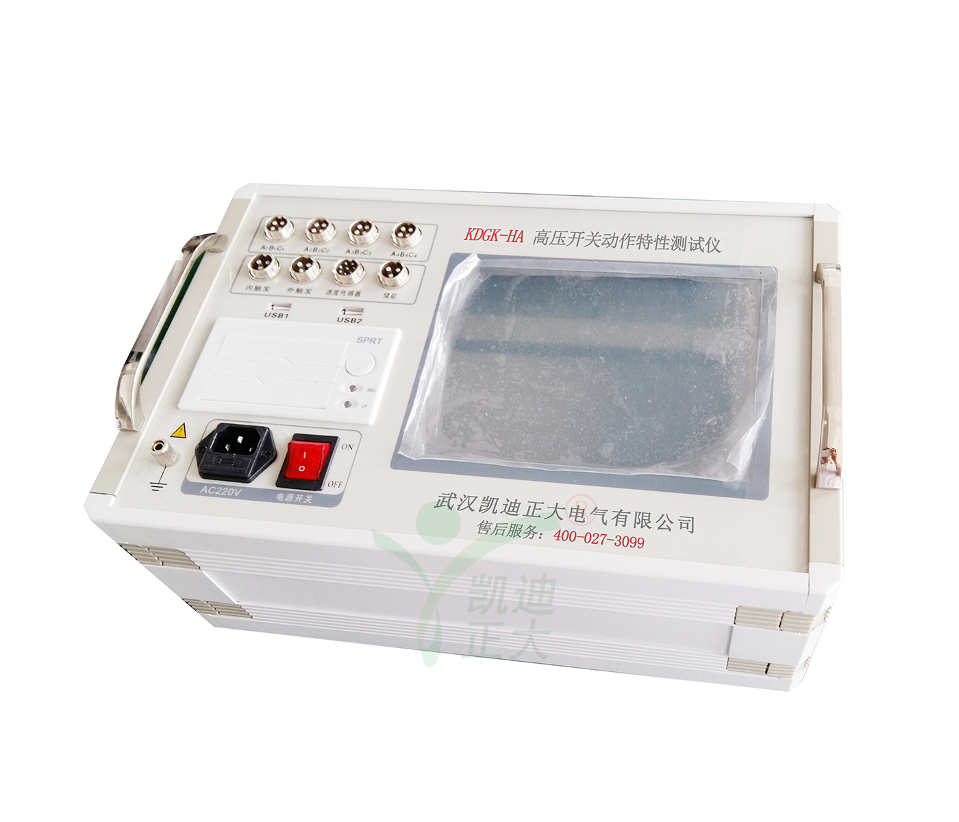 KDGK-HA 高压开关动作特性测试仪即(高压开关机械特性测试仪)是依据《高压交流断路器》GB1984-2003为设计蓝本,参照中华人民共和国电力行业标准《高电压测试设备通用技术条件》第3部分,DL/T846.3-2004为设计依据,为进行各类断路器动态分析提供了方便,能够准确地测量出各种电压等级的少油、多油、真空、六氟化硫等高压断路器的机械动特性参数。高压断路器在电力系统中担负着控制和保护的双重任务,其性能的优劣直接关系到电力系统的安全运行。机械特性参数是判断断路器性能的重要参数之一。