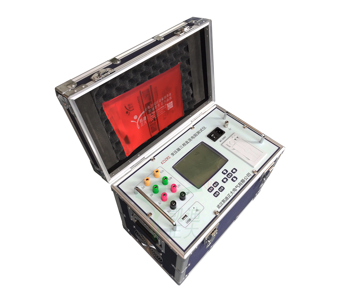KDZRS-40A变压器三相直流电阻测试仪(三相同测40A)(以下简称直阻仪)是变压器直流电阻测量的新产品,是为测量大容量变压器三相绕组直流电阻而优化设计的。可对变压器的三相绕组直流电阻进行同时测试。采用双电源结构,对有分接的变压器YN联接绕组,实现三相同时加电,测量系统采用独立三通道电流采样、三通道电压采样,同时测量并显示三相电阻值和三相不平衡率。对有载调压变压器可以不需要放电,直接调节分接开关,大大缩短工作时间,解决了电力变压器各分接绕组直流电阻测试耗时长的问题测量时间是传统单相测量的三分之一。直阻仪采用大屏幕液晶显示器,中文图形界面,清晰直观,操作非常简单。并配备面板式打印机和大容量非易失性存储器,可以方便的存储和打印测量结果。测试数据稳定,快速,重复性好。