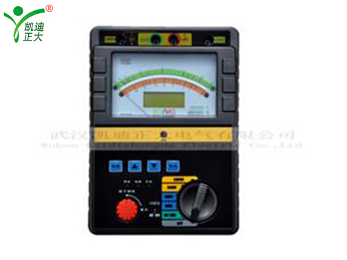 2、两种方式同步显示绝缘阻值。机械指针采用超薄型张丝结构抗震能力强。机械指针的采用可容易观察绝缘电阻的变化范围,点阵液晶屏的采用可指导用户操作仪表并可精确得出测量结果。