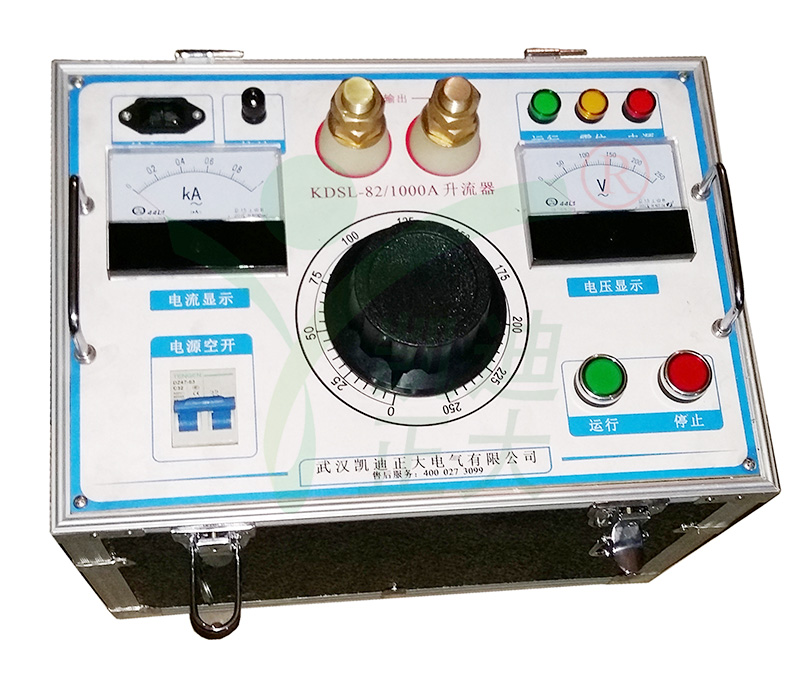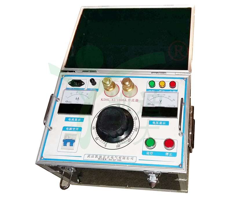 KDSL-82 系列大电流发生器是一种作为检验用的电流源,大电流试验器采用ARM芯片控制输出工艺和大容量的环形变压器,并且配有0.2级机械表计表,同时显示一、二次电流、变比和秒表接点(或电位)的动作时间。外配铝合金机箱,PC面板,具有外形美观,输出容量大,体积小,重量轻等特点。主要适用于电力系统的CT变比,接触电阻等需要大电流试验的场合。对电器作热稳定、动稳定试验时低压大电流电源,如空气断路器、接触器、继电器的温升试验及脱扣等。
