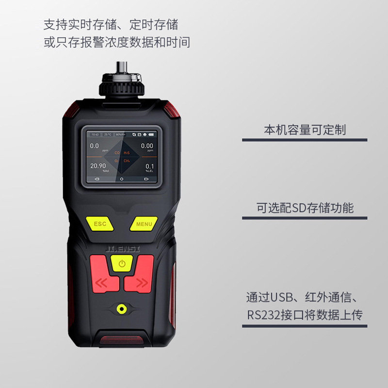 4、大容量数据存储功能,支持多种存储方式:标配 10 万条数据存储容量,更大容量可订制; 支持实时存储、定时存储,或只存报警浓度数据和时间。