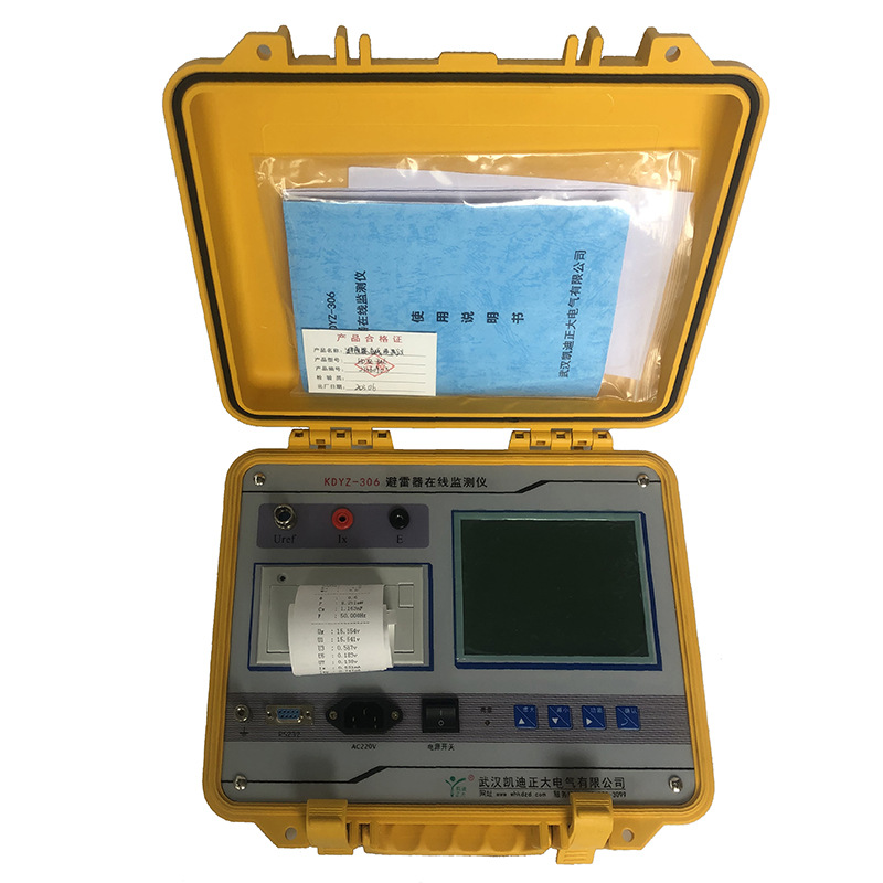 具有阻性电流基波峰值输出、边相校正等功能仪器配有可充电电池、日历时钟、微型打印机,可存储 120组测量数据。