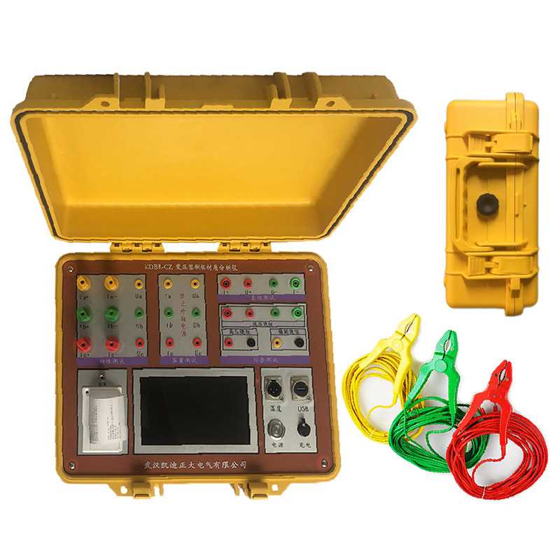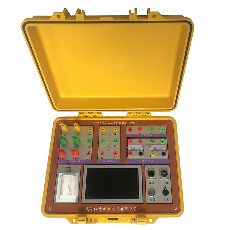 KDBR-CZ配电变压器铜铝材质判别测试仪(变压器材质分析仪)是我公司研发的集变压器绕组铜铝材质分析判定、容量测量、空载损耗测量、负载损耗测量、直流电阻测量、变比、匝比测量以及变压器代号水平判定于一体的多功能变压器综合测试仪。
