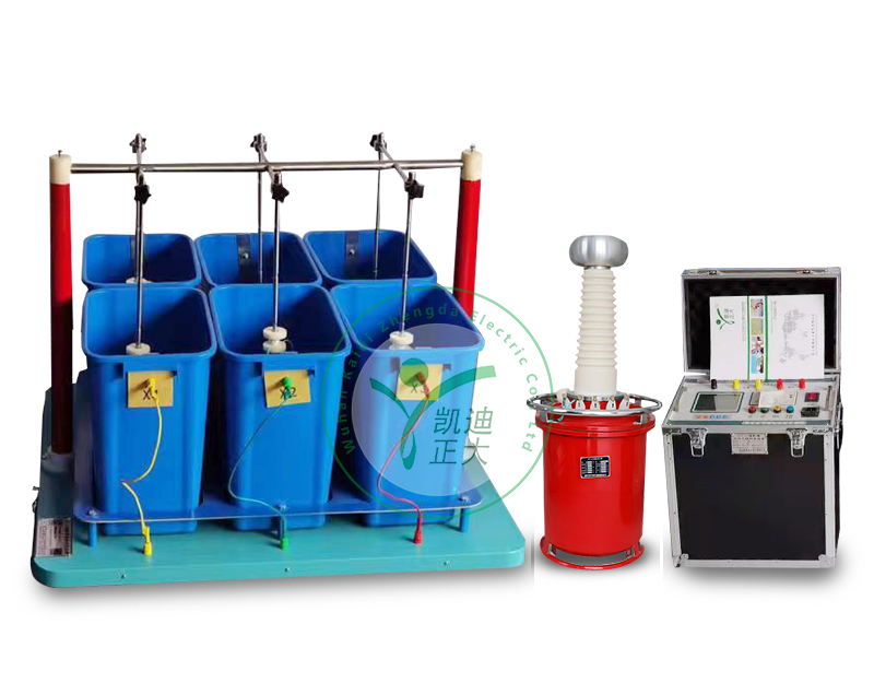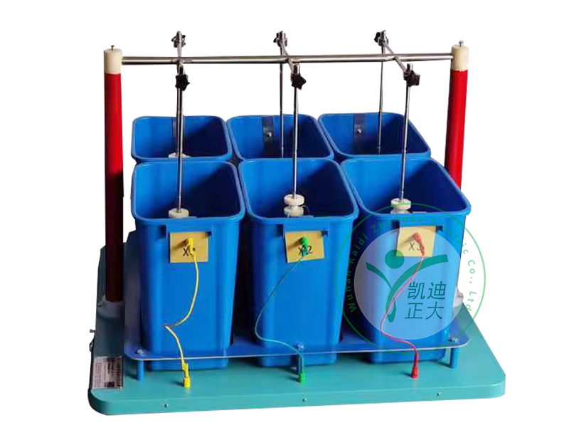 接入0~220V电源,根据电磁感应原理,使变压器产生0~100kV工频高压至各电极,使绝缘靴(手套、绝缘杆)获得规定的试验电压,根据绝缘靴(手套、绝缘杆)试验规程,读取、记录测试参数。