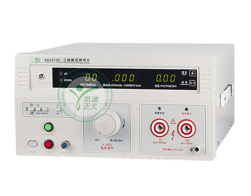KD2670C工频耐压试仪是通用型的高压测试仪器,广泛用于电工器材、胶木电器、变压器、电源线、电能表、电机、电源插头座、电缆线等的耐压测试,以及各种电子电气产品的耐压测试。