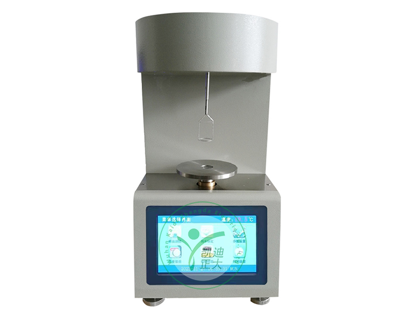 KDZL-807G全自动界面张力测定仪,按照GB6541-86《石油产品油对水界面张力测定法》(圆环法)标准要求,测量各种液体的表面张力(液—气相界面)及矿物油与水的界面张力(液—液相界面)。仪器采用彩色触摸屏显示,汉字菜单提示的无标识按键,自动化程度高,工作可靠,重复性好,操作简单,只需开机后按菜单提示操作,便可完成全部试验。