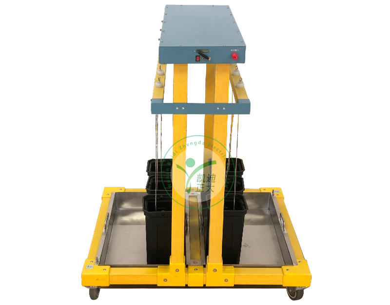 自动脱扣型绝缘靴(手套)耐压支架是根据《DLT 976-2017 带电作业工具、装置和设备预防性试验规程》、《DLT 1476-2015电力安全工器具预防性试验规程》、《GBT 17622-2008带电作业用绝缘手套》、《CB21148 2020足部防护 安全鞋》等相关规程中关于工频耐压的要求基础上研发而成。可以按要求对绝缘鞋、绝缘手套等安全工器具进行智能化绝缘耐压试验,绝缘靴及绝缘手套耐试验周期为半年,试验过程中不允许击穿,同时绝缘靴绝缘绝缘手套泄漏电流不大于限定值。产品适用于电力相关行业。