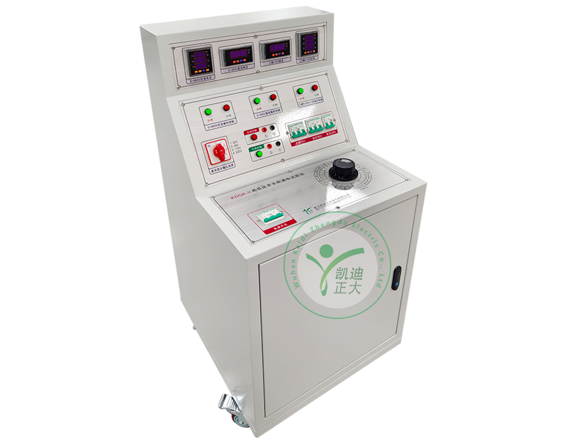 KDGK-II 高低压开关柜通电试验台用于高低压开关柜生产厂家对所生产的高低压开关柜进行出厂前的各项通电试验。它能提供各种交、直流电源,便于对开关柜的检测,提高工作效率。