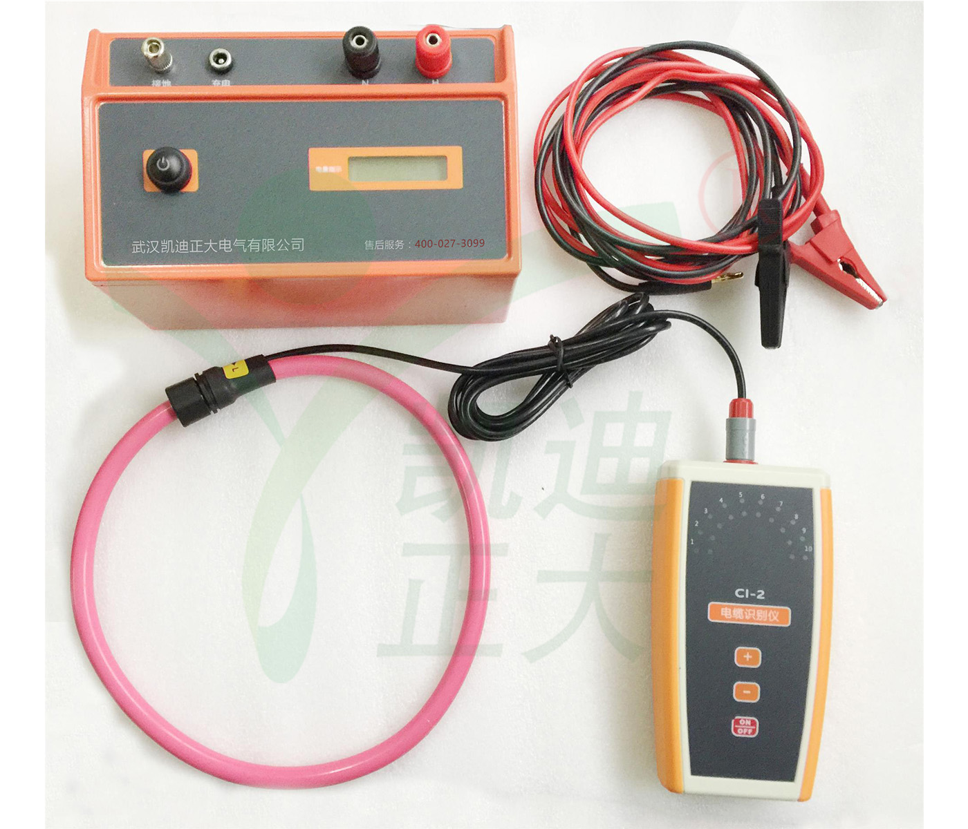 电缆识别仪由信号发生器KD-214A和接收钳信号检测器KD-214A及指示表三部分组成,信号发生器主要产生特殊的脉冲调制信号,通过输出线加至停止运行的被测电缆上,用接收钳在现场寻找被测电缆,当接收钳检测器测到施加在电缆上特殊信号时,而其它电缆线上检测到的信号则要小很多且方向相反,通过电表指示幅度及方向,很容易判定被测电缆。