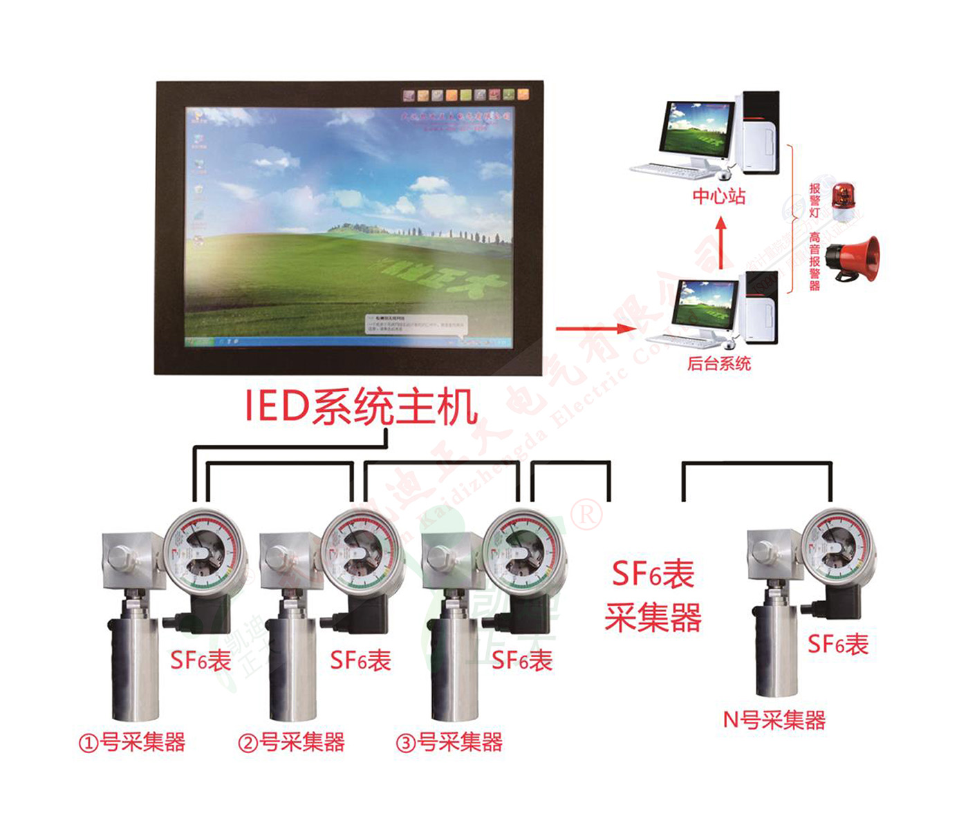 为适应我国电力行业体制改革的需要和加快电气设备在线监测技术及状态检修发展的步伐,研究和探索以在线监测技术为基础,故障检修与预防性相结合,以实现可靠性和低成本消耗为目标的状态检修模式,我公司研制出的KDWS-ZX SF6气体密度在线监测系统该设备能够以高于国家标准的测量精度,长期在线监测断路器SF6气体的密度、微水、温度及其变化趋势,其功能是在SF6气体有关指标出现变化时,给出变化曲线;有关指标达到报警状态时,报警或自动启动报警装置;当有关指标超标达到危险状况时,报警或自动启动闭锁装置,禁止断路器动作,以保障设备和变电站整套系统的安全。上述监测设备配有RS-485/CAN通讯接口,可将监测数据实时上传至变电站、城市中心乃至更上级监控中心,真正实现变电站,尤其是无人值班站的设备在线监测。