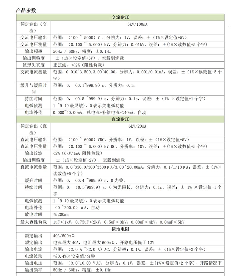 a)电气耐压:输出容量500VA(ACW : 5KV/100mA;DCW 6KV/20mA,);