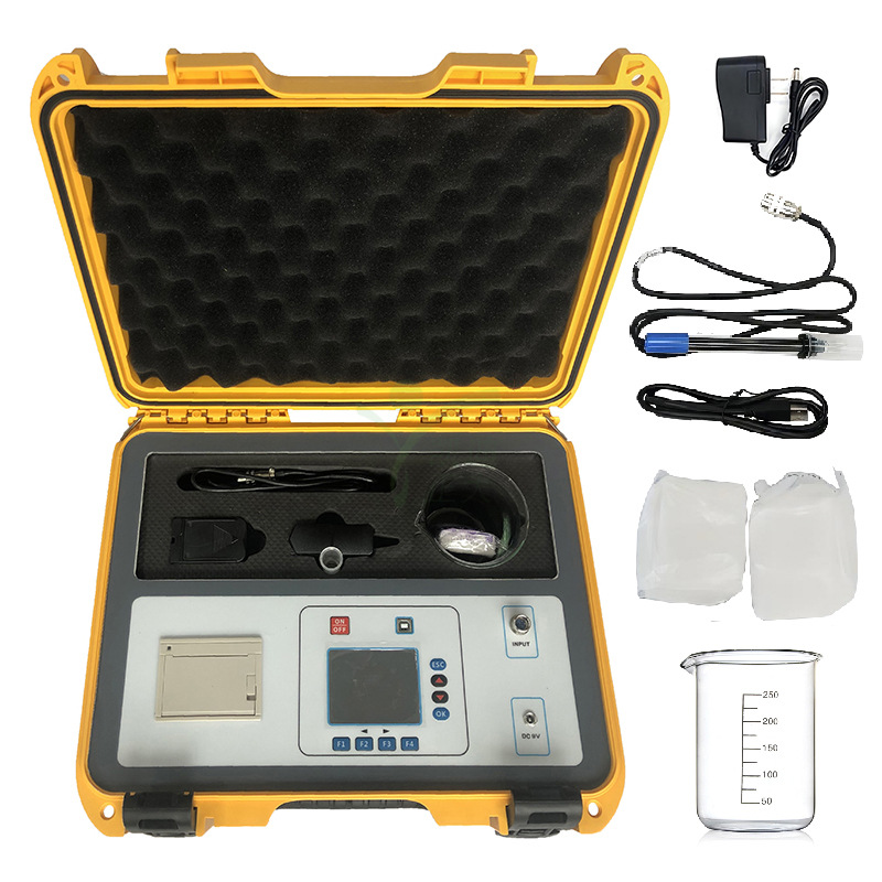 人机交互采用真彩TFT液晶屏,操作简单,测试参数和结果一目了然。仪器自带微型打印机,方便数据保存和对比。提供外部供电和内置电池两种供电方式,方便实验室和野外现场测试。